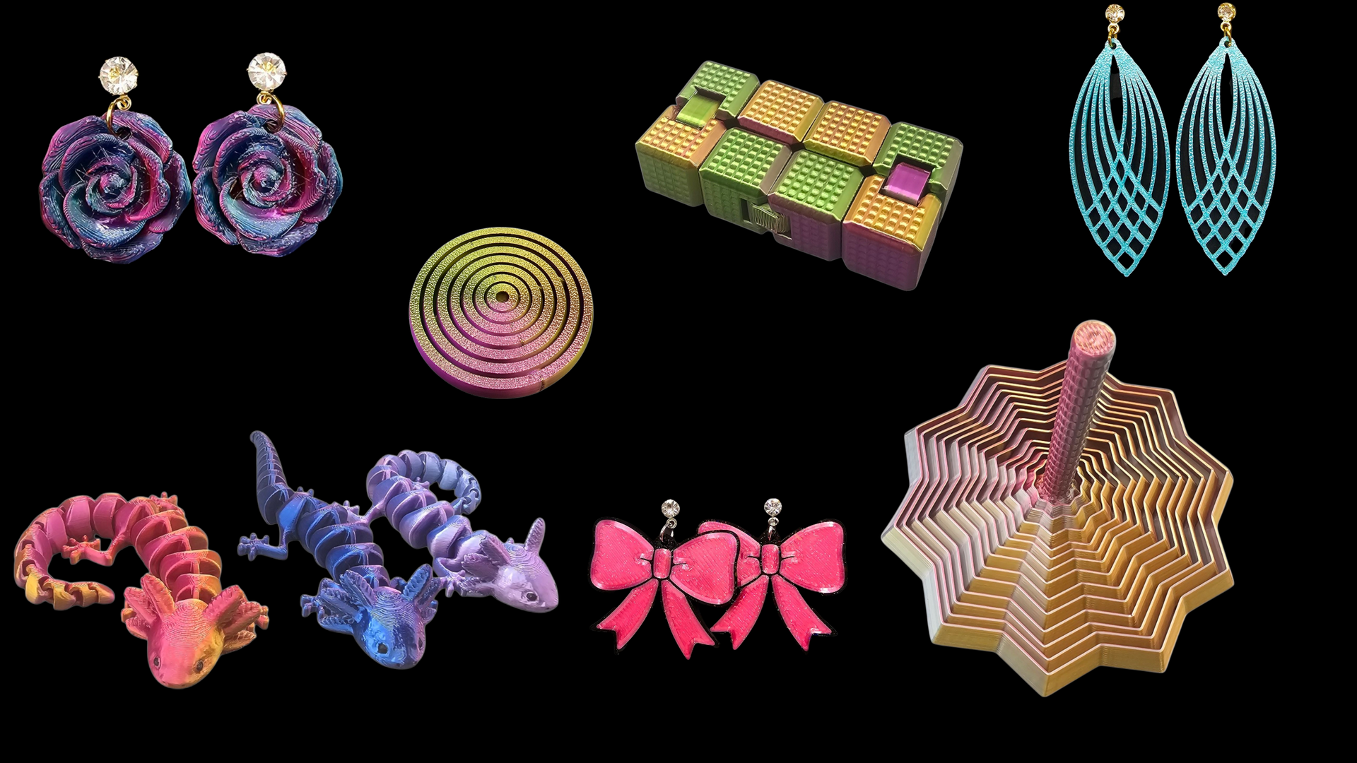 Omdat oorbellen en fidget toys nauwelijks gewicht hebben, kun je ze perfect maken van overgebleven filament. Een restje van 20 cm? Klinkt misschien waardeloos, maar dat is bij ons precies genoeg voor een paar toffe oorbellen of een mini fidget.