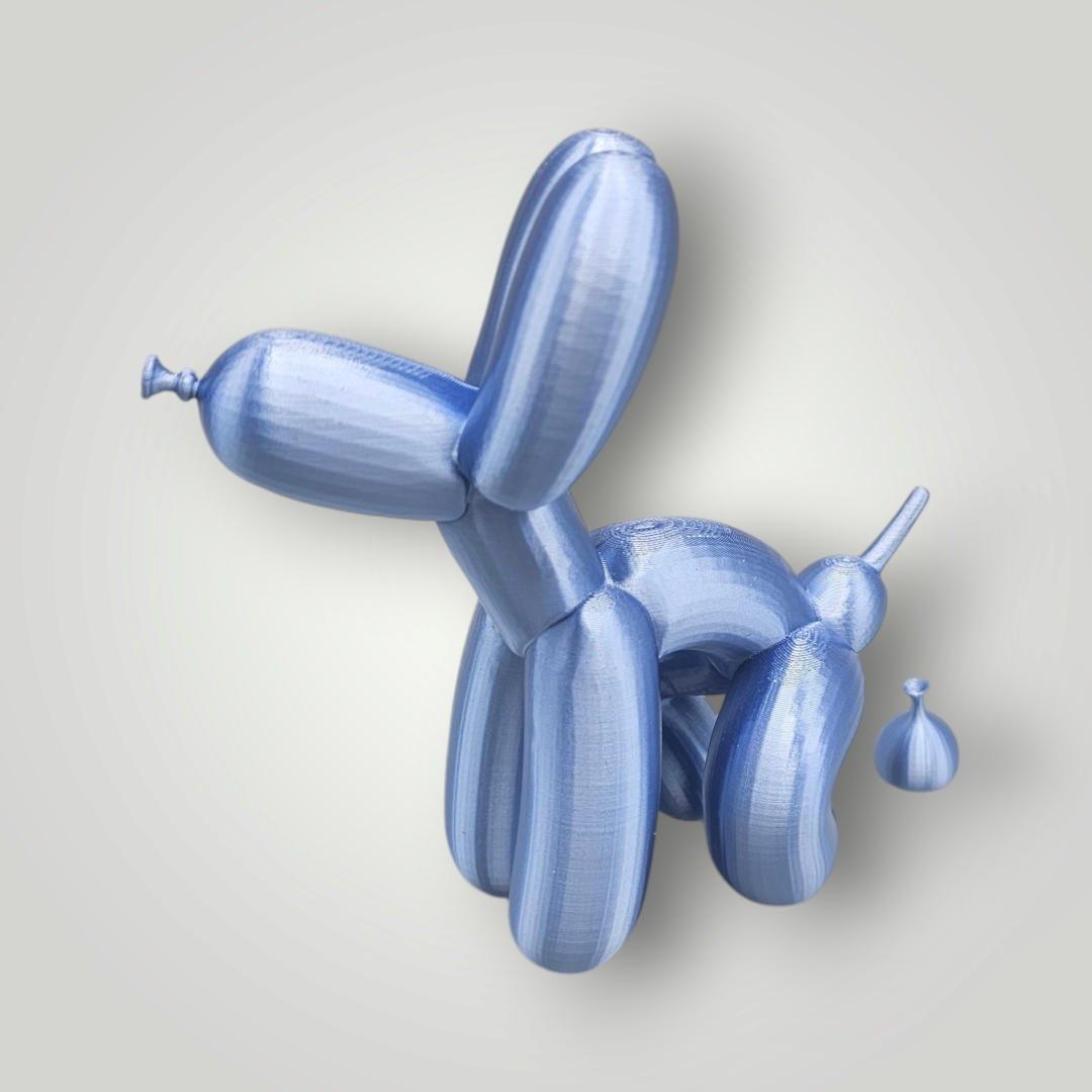 Breng een vleugje humor in je interieur met dit unieke poepend ballon hondje! Dit eigenzinnige beeldje is 3D-geprint met PLA (biologisch afbreekbaar plastic op basis van maïszetmeel) en steelt gegarandeerd de show op je bureau, plank of toilet.