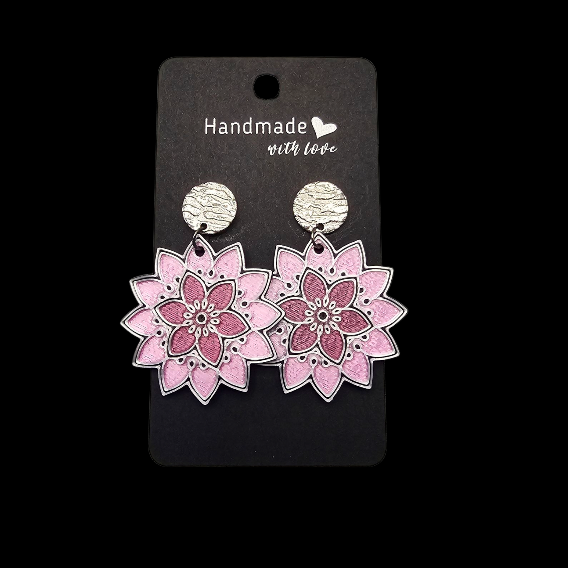 Handgemaakte bloem oorbellen – 3D-geprint en lichtgewicht – met steentje of reliëf knopje