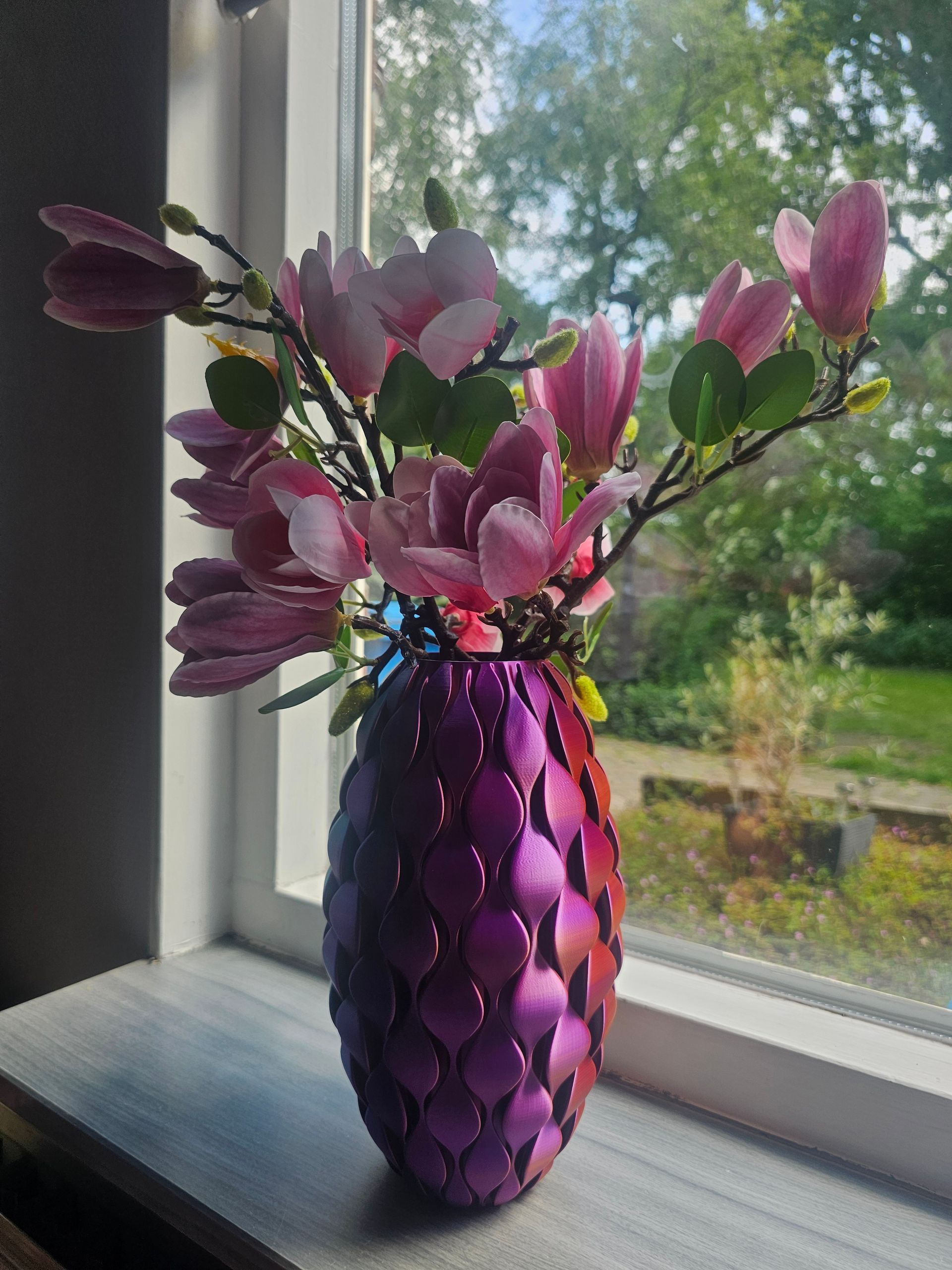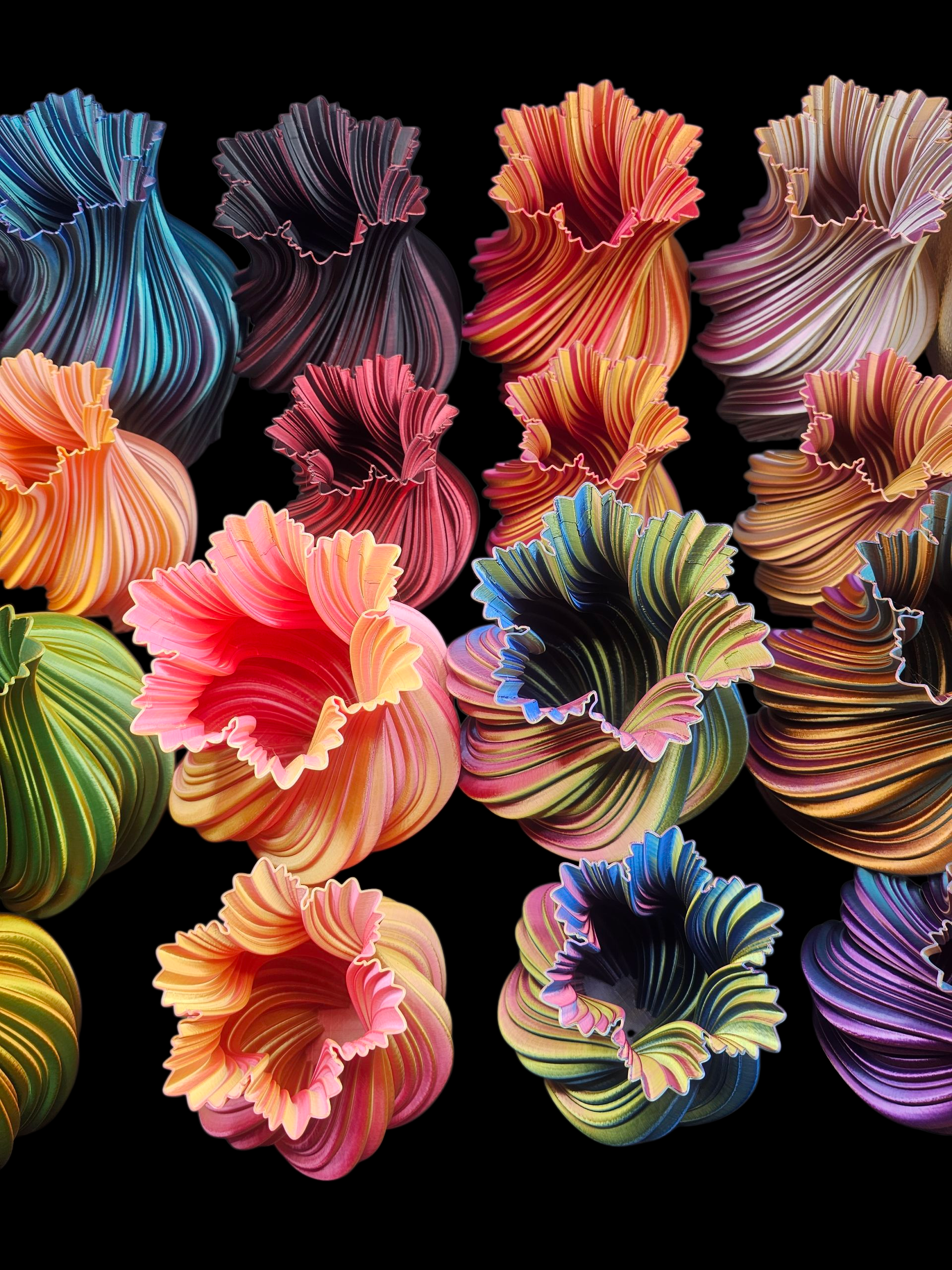 Onze meerkleurige PLA-producten zijn hier perfect voor, omdat ze een zacht kleurverloop creëren dat leven en beweging in een ruimte brengt. Door het filament verandert een vaas soms subtiel van tint als je er langsloopt of hem draait op tafel. Dat maakt het interieur levendiger zonder druk te worden.